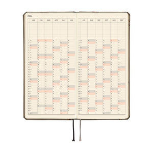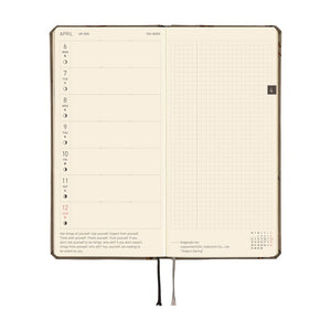 Slim and portable—about the size of a long wallet—this English-language planner pairs each weekly spread with a blank page for notes, plus 71 additional grid pages, monthly calendars, and a habit tracker. Like all Hobonichi planners, it’s made with thin yet strong Tomoe River paper, allowing for a large number of pages in a slim profile.