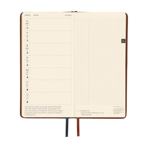 Slim and portable—about the size of a long wallet—this English-language planner pairs each weekly spread with a blank page for notes, plus 71 additional grid pages, monthly calendars, and a habit tracker. Like all Hobonichi planners, it’s made with thin yet strong Tomoe River paper, allowing for a large number of pages in a slim profile.