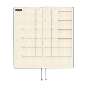 Slim and portable—about the size of a long wallet—this English-language planner pairs each weekly spread with a blank page for notes, plus 71 additional grid pages, monthly calendars, and a habit tracker. Like all Hobonichi planners, it’s made with thin yet strong Tomoe River paper, allowing for a large number of pages in a slim profile.