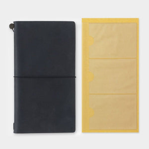 Keep cards and small notes, ticket stubs, or stamps neat and organized within your Traveler's Notebook with this card file insert. Twelve clear business card-sized pockets allow you to keep everything neatly stowed and visible.