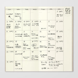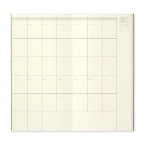 A monthly planner notebook refill designed to fit the regular-sized Traveler’s Notebook. The two-pages-per-month calendar pages are undated, meaning you can start using this planner at any time during the year and at your own pace. Each Diary Monthly planner has enough pages for 14 months, and includes a world map and a few blank pages in the back for notes.