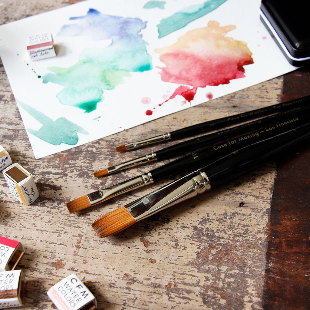 Imported from Germany, Case for Making's synthetic bristle flat tip brush comes in 4 different sizes.
