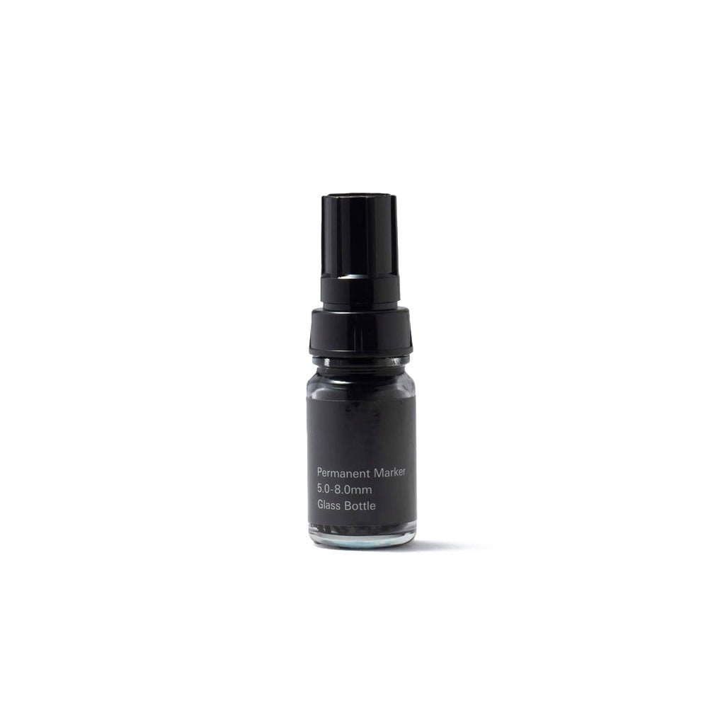 Kakimori's Endurance Marker is felt-tipped marker housed in a small glass bottle with a plastic cap. The multipurpose oil-based ink can be used on a wide variety of everyday surfaces including metal, ceramics, glass, and plastic. It's fast drying and water resistant, making it suitable for a multitude of uses around the home and office.
