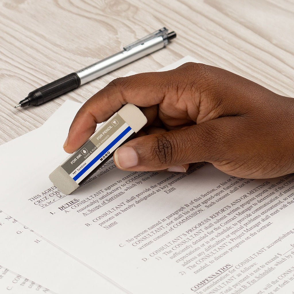 Due to the abrasive nature of this eraser, we recommend taking care when erasing on thinner paper, as it could create holes.