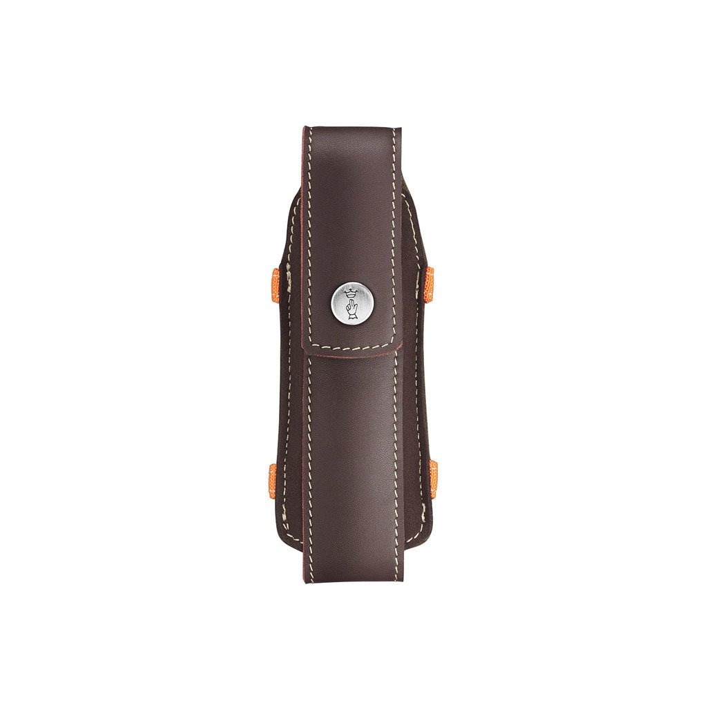 Materials: varnished oak wood handle, stainless steel, synthetic leather