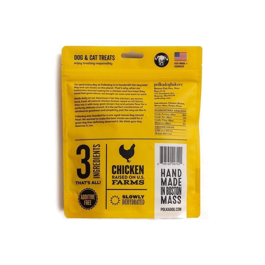 Bone-shaped dog treats made of local, fresh, all-natural chicken breast mixed with long-grain brown rice and potato flour for a perfectly delicate crunch. Chicken Littles are the ideal combination of wholesome goodness and simplicity. Made daily in a kitchen at Boston Fish Pier, Polkadog Bakery treats are handcrafted to be the very best for your pet.