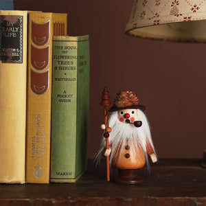 With his pinecone hat and long, snowy beard, our Smoking Forester has the look of a mysterious woodsman who lives among the trees. As a steward of the forest, he hikes its many paths, staff in hand, quietly puffing on his pipe as he purveys the many wonders of the woods.