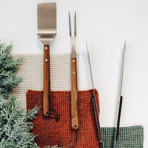 - 15" Tongs - The tongs have serrated teeth set at an angle that provides a fast and firm grasp on steaks and sausages.