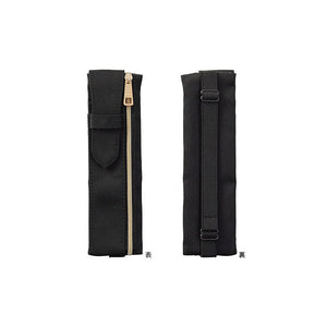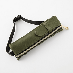 Keep writing utensils handy with this Book Band Pen Case by Midori. A non-slip outer pen pocket holds one pen or pencil and is protected by a fold-over flap, while the larger zippered pocket can hold three or so thick pens. The large pocket is lined, to keep your finer writing instruments protected. An adjustable elastic strap allows the pen case to fit over most notebooks from B6 to A5 size.