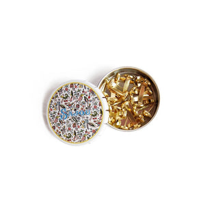Specifications: approximately 25 brass fasteners in a tin 1.8" D x 0.6" H
