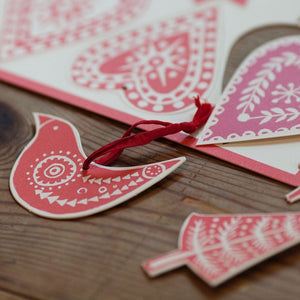 Celebrate the season with Cambridge Imprint’s Folk Art Christmas Decorations—a set of 18 printed ornaments inspired by traditional holiday craft. Each piece is made from sturdy, double-layer ivory card and printed in hand-mixed festive colors. Pop them out, thread with ribbon or twine, and hang them on the tree, or string them together to create a cheerful garland for any corner of your home.