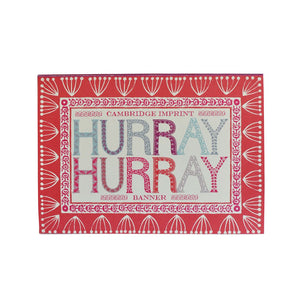 Twelve large, double-sided, patterned card letters spell out HURRAY HURRAY. The letters are in assorted colors and designs, all with a strong folk art aesthetic. String them together on yarn or ribbon of your choice (not included). The finished banner will measure between 2 and 3 yards long.