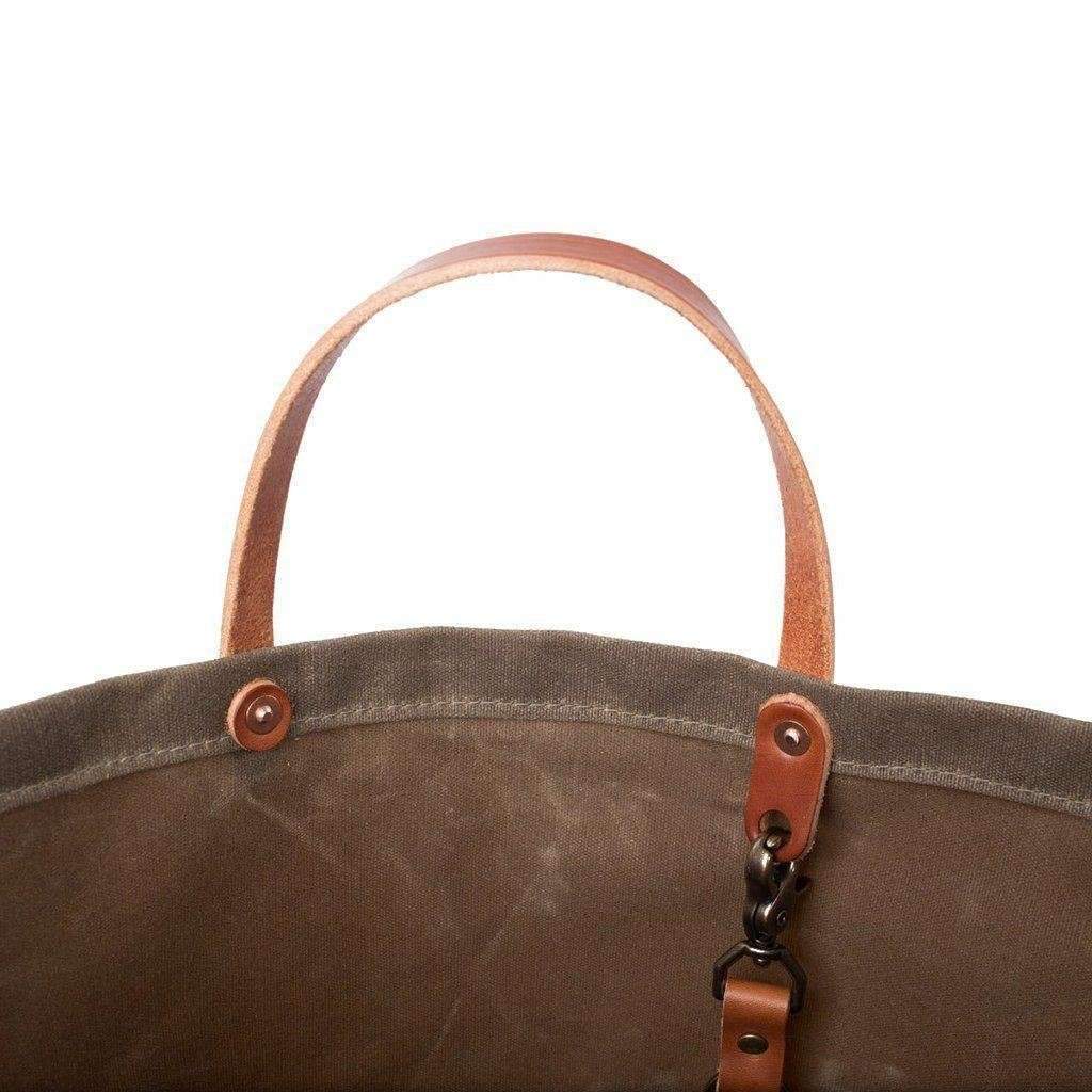 Made in San Diego, California, Bradley Mountain's Coal Tote is the perfect carry-all tote for everyday use. This is a sturdy and multifunctional tote made with waxed canvas, for water-resistant, rugged functionality. Leather handles and a hide-away shoulder strap make for comfortable carry.