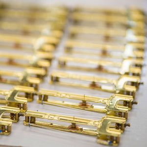 Care: Brass products will take on a patina as they age. If you prefer the look of polished brass, metal polishes such as Brasso can be used to restore the original luster.
