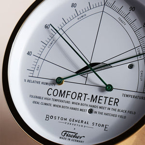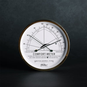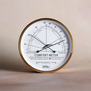 The Boston General Store x Fischer Comfort-Meter is a combination of a thermometer for measuring air temperature and a hygrometer for measuring relative humidity. Fischer refers to it as a climate meter. It can be used indoors or out.*