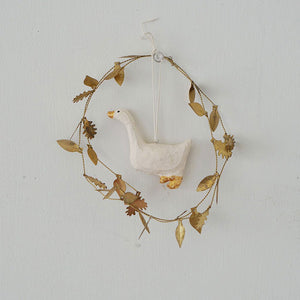 Don’t duck out on holiday cheer! Handcrafted in Kashmir, India, this paper mache duck with gold feet and a gold beak is full of cottagecore charm. Hand shaped and painted, it’s crafted from upcycled cotton fabric waste from the fashion industry and is 100% biodegradable.