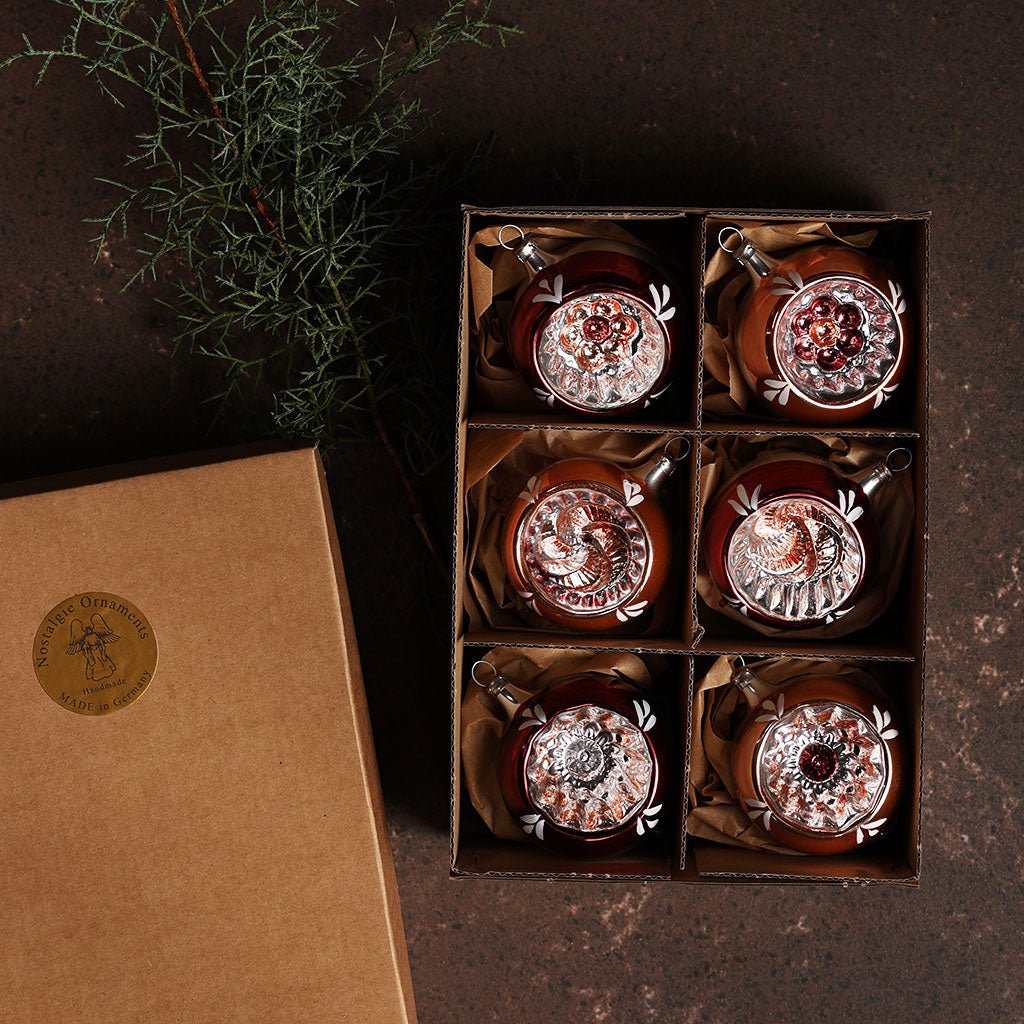 Honoring more than a century of craftsmanship, Nostalgie-Christbaumschmuck ornaments are skillfully glass-blown using original vintage molds that have been preserved and carefully restored. Each ornament is delicately hand-painted, patinated, and finished with a classic iron cap, bringing timeless character to every piece.