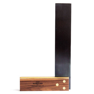 Marples' 9" Square is crafted from hardwood and tempered, blued steel. It features a machined brass face for protection against damage and for accuracy. The blade is secured with brass round rivets. Wood color and grain pattern may vary. Logo color may also vary between gold and black.