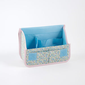 The Hobonichi Stappo is a standing pouch that can be used to organize all kinds of small items around your desk. In collaboration with Liberty Fabrics, this Sasha Kiora desktop bag features a sophisticated botanical print of pink and light blue blooms among a bed of green leaves—evoking a calm springtime meadow.