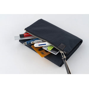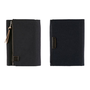 Tragen means “to carry” in German and is an appropriate name for this functional fabric cover that features a zippered pouch for pens, pencils, and your favorite Hobonichi accessories. With a tri-fold design, magnetic closure, interior card pockets, and a pen holder, this cover truly holds it all! The black nylon fabric is designed to stand up to frequent use and is complemented by leather accents. This cover fits an A6 size Hobonichi Techo Original book.