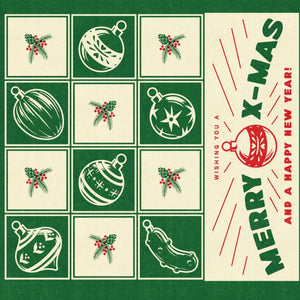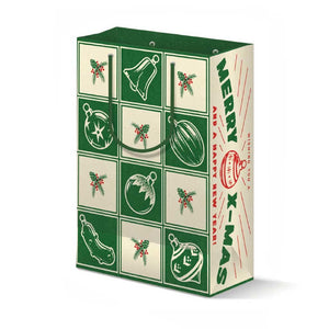 Gift in festive style with this Holiday Ornament gift bag from Wallflower Paper & Party. Featuring a vintage-inspired design, this bag showcases a charming assortment of ornaments and sprigs of holly—you might even be lucky enough to spot a Christmas pickle.