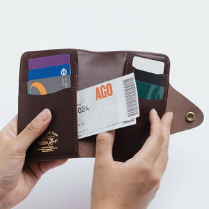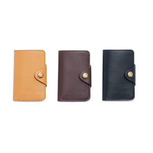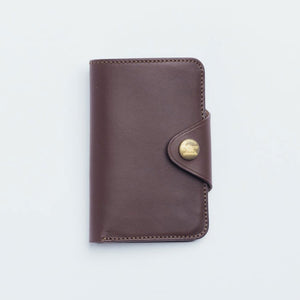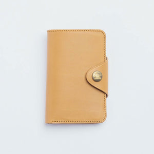 Crafted in Japan from richly textured vegetable tanned cowhide, the Ingrassato Bill & Card Wallet is built for years of reliable use. Its slim profile holds just enough cards, folded bills, and a few essentials. Clean stitching, hand-finished edges, and durable brass snap closures reflect the care and precision of skilled craftsmanship.