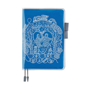 This clear cover fits onto a HobonichiTecho A5 cover to protect it from wear and tear and features a print from embroiderer and illustrator Iyo Okumi's embroidered artwork. When placed over a solid-color Techo cover, the print stands out. This one is called "Beautiful Season" and depicts the beauty of the winter season.