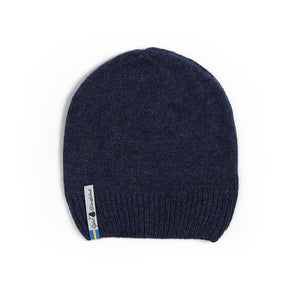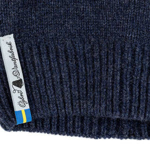 Made in Sweden, the hat is knit in a pattern inspired by simple work mittens. The traditional colors of charcoal and navy are practical and versatile.