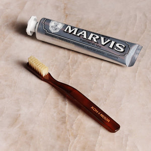 The Koh-I-Noor Jaspè Natural Toothbrush is a luxury toothbrush, handcrafted by skilled Italian artisans from polished cellulose acetate. Available with soft or medium bristles, it's thoughtfully designed for a comfortable grip and features ethically sourced natural bristles with rounded tips. It offers a gentle yet effective clean, blending artisan tradition with modern oral care.