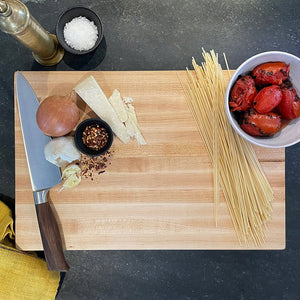 A beautiful cutting board deserves a good knife. Find one for every use in our knife collection.