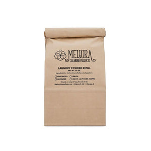 Meliora Cleaning Products' Laundry Powder is your go-to people-and-planet-friendly laundry option. Unlike most traditional laundry detergents, Meliora is free of synthetic fragrances, dyes, preservatives, and brighteners, in keeping with their motto to "Use only what you need to clean your clothes."