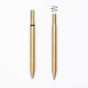 The brass Method Pen is a timeless piece with modern appeal. The all-metal construction of this retractable pen has been crafted with precision and features an elegant twist movement revealing a contrast of black in its retracted position.