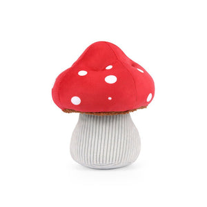A plush mushroom toy for pup that's sure to entertain. With squeakers and crinkles and a hidden cruncy bottle, there are lots of fun play features to keep dogs happy!