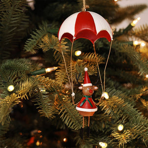 Soar through wintry holiday skies with this Reindeer with Parachute ornament. Carefully hand-painted, this metal parachute carries a charming Otto, bundled up in festive winter attire, on a merry adventure among the clouds—bringing a playful touch to your Christmas tree.