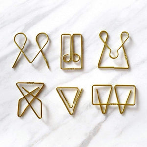 These paper clips are made from brass wire and are inspired by paper clip patents from the late 19th and early 20th century. Tools to Liveby improved the designs and reproduced six popular shapes.