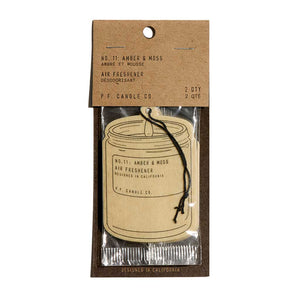 The newly redesigned Air Freshener from P.F. Candle Co. is the perfect way to spruce up your everyday spaces without an open flame. Well-suited for smaller areas and nooks such as closets, bathrooms, and cars, this air freshener can be hung anywhere to liven up a space. From the coziness of a warm cabin, to adventurous road trips along the coast, P.F. offers a wide array of scents to immerse you in whatever environment you desire.