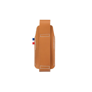 The Premium Leather Sheath offers a sustainable way to carry your favorite Opinel knife. Meticulously handcrafted in Savoie, France, by the renowned BIG-GAME Swiss design studio, it’s made from regenerated leather—an eco-conscious material crafted from waste leather fibers and plant-based components. The sheath features a refined flap closure, a rich cognac hue, and exceptional durability, blending timeless elegance with practicality. Designed to perfectly fit the Opinel No. 07, No. 08, No. 09, and No. 08 Effilé, knives, it also includes a belt loop that accommodates belts up to 2 1/2" wide.