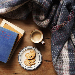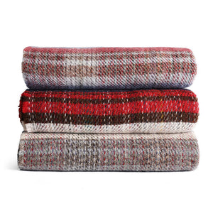 Tweedmill's recycled wool throw blanket (known as a rug in Britain) is woven from repurposed wool in their factory in Flint, UK. Each blanket features colors inspired by nature, combined to create beautiful patterns.