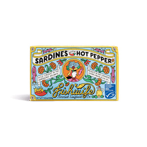 Fishwife's sardines are hand-packed in Galicia, Spain with the highest quality ingredients for the freshest taste imaginable. Responsibly wild-caught of the coast of Cornwall, England in the only MSC-certified sustainable sardine fishery in Europe, these Sardines with Hot Pepper are packed using traditional methods with hot pepper and Spanish extra virgin olive oil.
