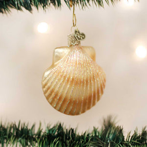 She sells seashells by the seashore—and this one sparkles on the Christmas tree! Hand-painted and glittered, this glass Scallop Shell ornament brings a festive touch of seaside charm to the holiday season.