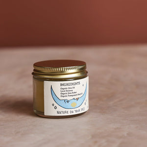 Materials: organic olive oil, local beeswax, organic shea butter, organic pomegranate seed oil