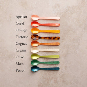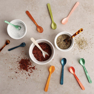 A small spoon ideal for dispensing spices or seasonings. Use it for serving condiments, dips, and jams, or for stirring espresso. Handcrafted in Germany, this little spoon is available in a rainbow of colors and will add color to your kitchen! Sold individually.