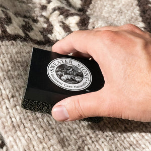 A natural pumice-like stone that renews the look and luster of garments, the Sweater Stone can be used on sweaters, knits, cashmere, upholstery, towels, shirts, and bedding. Cells within the stone contain sharp edges that pull and remove pills and balls.