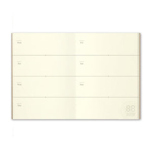 A weekly planner refill designed to fit the Traveler’s Passport Notebook. The two-pages-per-week pages are undated, meaning you can start using this planner at any time during the year, and use it at your own pace. Each Diary Weekly planner has enough pages for 6 months.