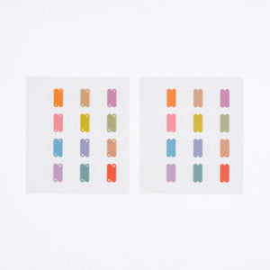 This set of 24 colorful index stickers from Hobonichi's TSUKI no IRO line helps you organize and personalize your planner. Matching each month of the year in the Hobonichi Techo, these index stickers come in 12 distinctive colors, making it easy to flip to any month or section. Their slim shape and rounded corners let the tabs neatly complement your planner, without protruding or feeling bulky.