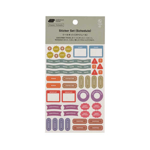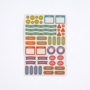 With five sheets, this sticker set includes: stickers with text, frame-style stickers, various shapes, and two styles of scheduling icons.
