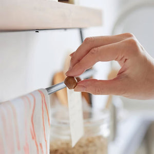 A set of five wooden magnets shaped like balls. Made of lightly finished acacia wood, these small magnets are suitable for use around the home and office on refrigerators, magnet boards, or other metal surfaces.