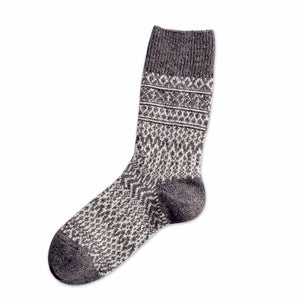 Stay warm all winter with this cozy pair of Wool Jacquard socks from Nishiguchi Kutsushita. With a jacquard-woven, two-color design, these crew socks offer a festive touch peeking out from under pant cuffs and skirt hems.