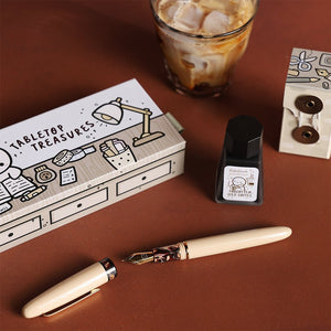 Forgotten Iced Coffee Ink flows smoothly, shows off rich color with subtle shading, and adds a dash of personality to every page. Packaged in a sturdy glass bottle featuring charming CoffeeMonsterz artwork, it is equal parts practical and delightful—perfect for journaling, note taking, or adding a little fun to your desk.