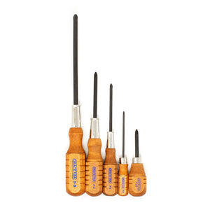 A good set of Phillips head screwdrivers is an essential part of a well-rounded tool kit. This 5-piece set from Grace USA is precision manufactured and hand assembled entirely within the United States and features steel alloy blades with Maine hardwood handles.